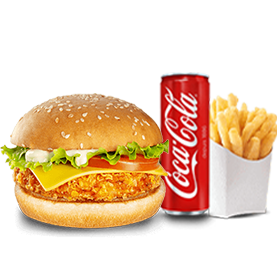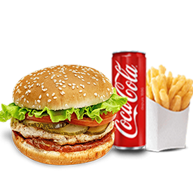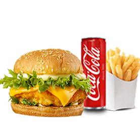 Chicken, cheddar, salade iceberg, sauce mayonnaise + Frites + 1 Boisson 33cl au choix.